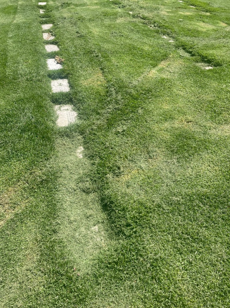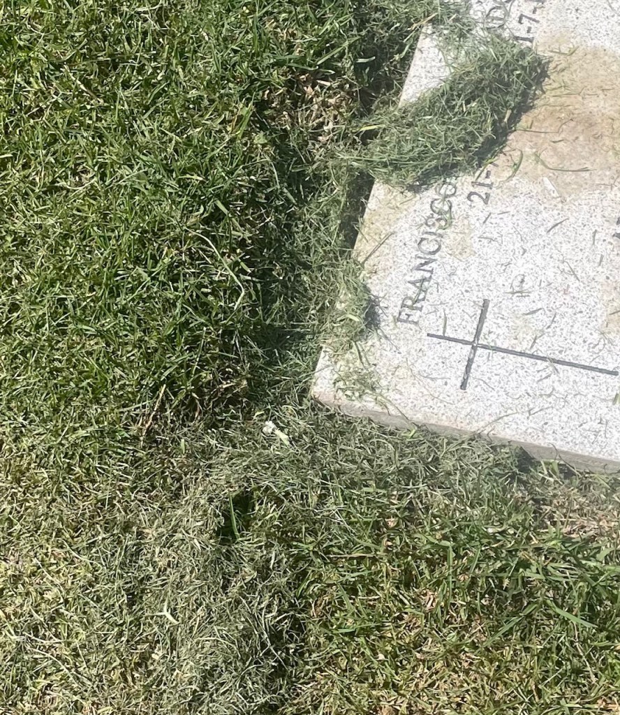 Todo aquel ritual íntimo, propio, delicado, de respeto y de recuerdos lo volcamos en cuidar sus lápidas. Es lo único tangible de aquel momento tan íntimo. Recortamos un poco el césped de su contorno, limpiamos su lápida con detergente y agua que llevamos, la secamos, la besamos y en ella depositamos las flores que de regalo les llevamos!!!!